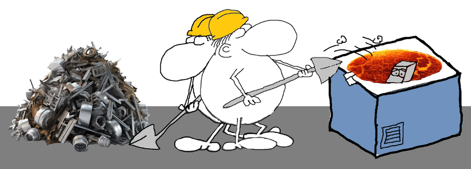 Verschiedene Verfahren, je nach Material, z.B. Schmelzverfahren bei Metallen und Kunststoffen, chemische Recyclingmethoden bei bestimmten Kunststoffen oder mechanisches Recycling bei Papier und Glas.